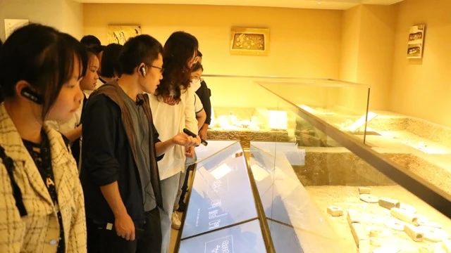 随后,在南大文学院师生陪同下,研学队伍参观了“帝陵迷踪——南京大学北园东晋墓特展”。南京大学博物馆魏美强老师作为展览执行人向大家作了系统讲解。着重介绍了南京大学北园东晋大墓的考古发掘过程、出土文物知识和相关研究成果,同学们得以更加全面地感受魏晋的历史文化与风貌世情。